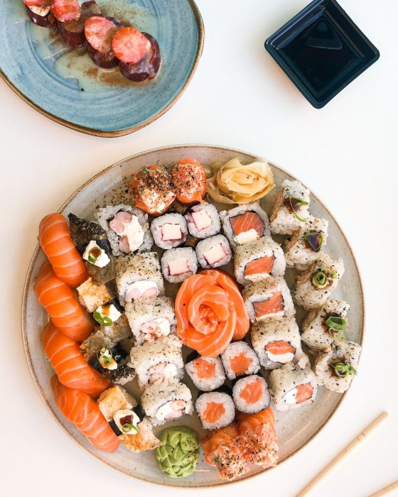 O mais completo de todos leva 4 sashimis de salmão, 5 uramakis Filadélfia, 5 uramakis camarão, 5 uramakis patê de salmão, 4 niguiris de salmão, 4 niguiris de skin, 4 joes de salmão, 4 hossomakis de salmão, 4 hossomakis de kani e 4 soul.