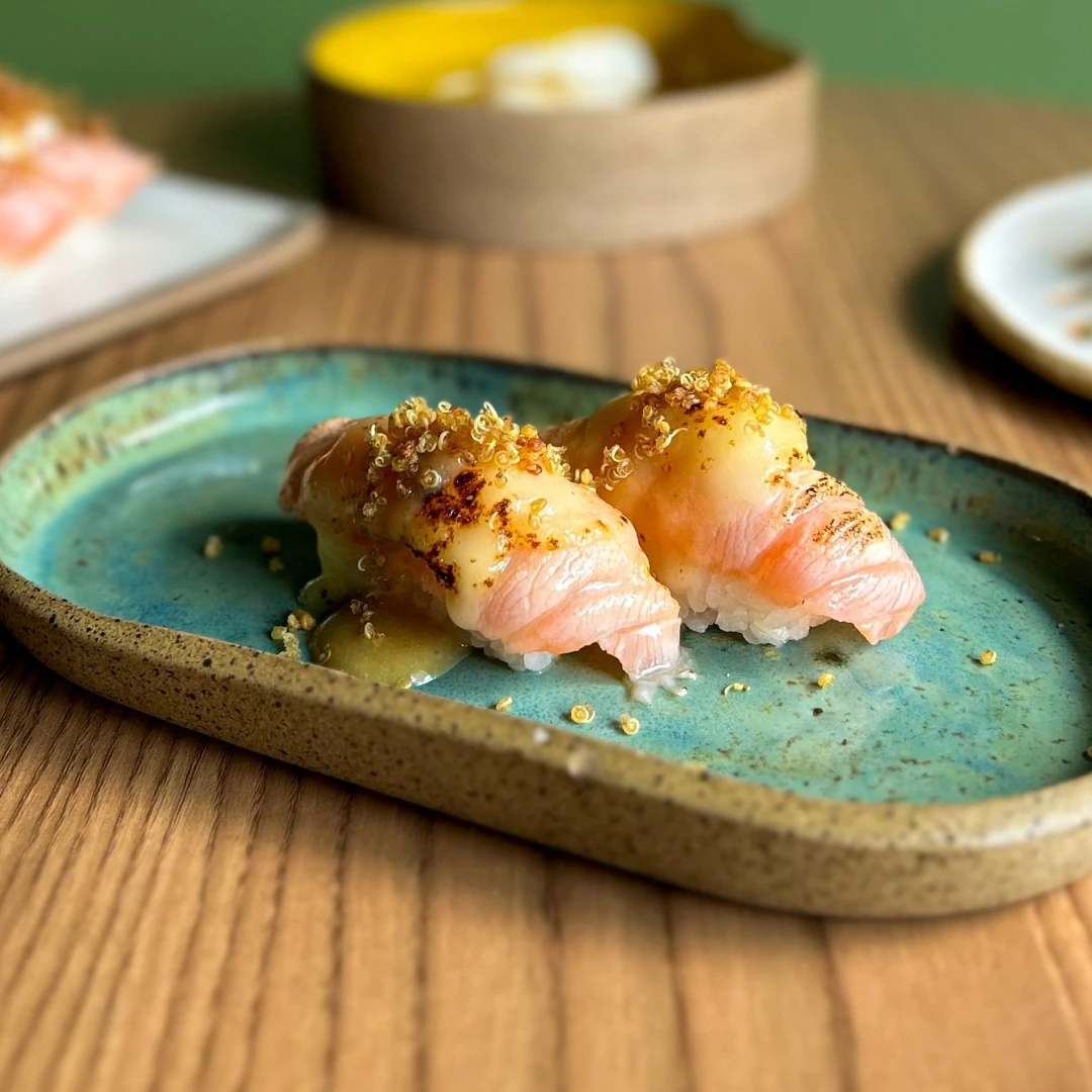 15 fatias finas de peixe, cuidadosamente marinadas em um irresistível molho trufado.