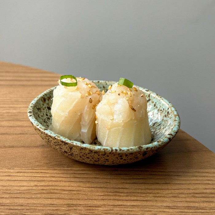 Recheado de shari, salmão temperado com azeite trufado e limão siciliano.