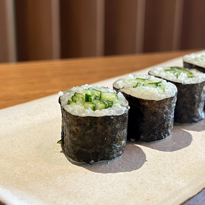Alga recheada com arroz e atum, uma combinação leve e saborosa.