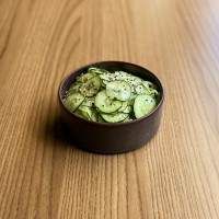 Salada refrescante de pepino japonês, equilibrada com notas agridoces e finalizada com gergelim torrado.